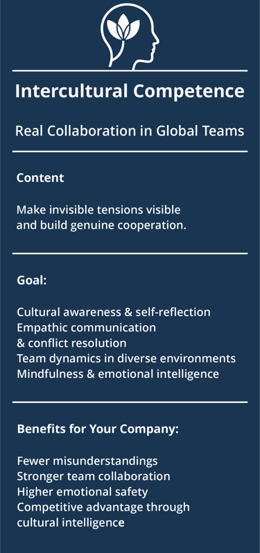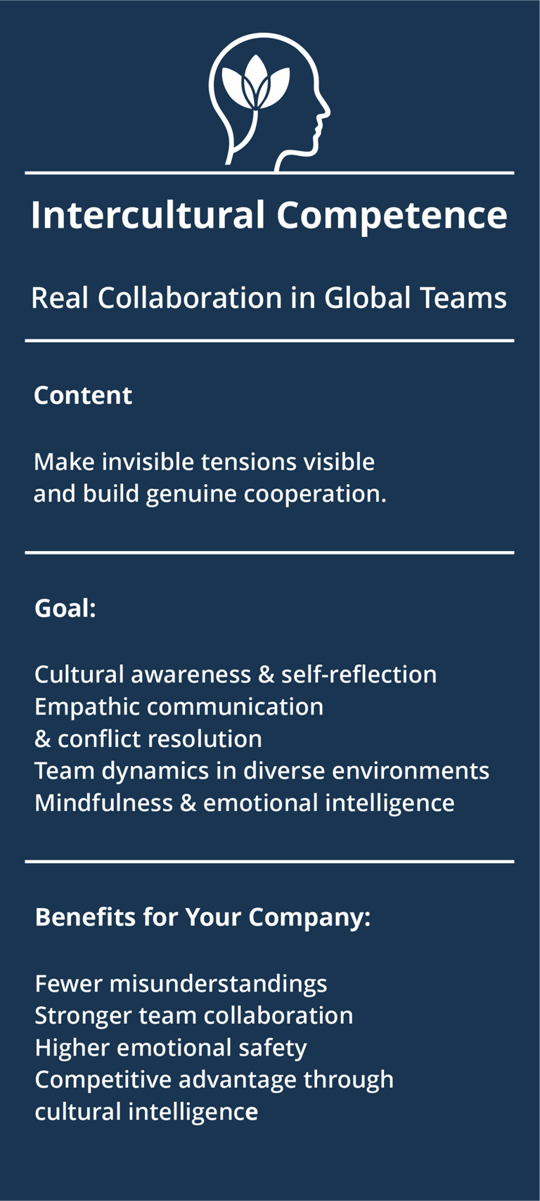 Thanks to the intercultural training with Aga, our team meetings became much more productive and successful. We were able to openly discuss cultural differences, especially regarding communication and business etiquette in the USA, the UK, Germany, and Spain. This made the strengths and concerns of each team member clearer. We have become more aware of how our judgments, emotions, and actions are interconnected. This will certainly help us collaborate better in the future and avoid conflicts.